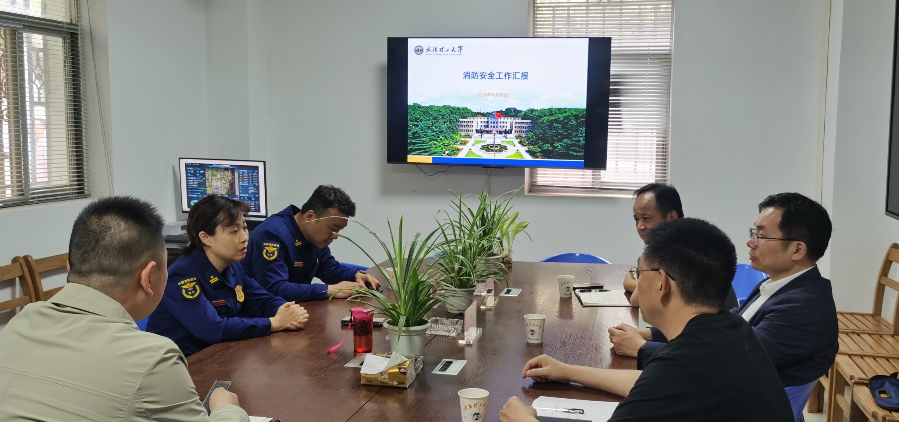 4月18日下午,武汉市消防救援支队重保处陈黎处长一行来校调研指导消防工作,沈革武副校长及保卫处相关人员参加调研。